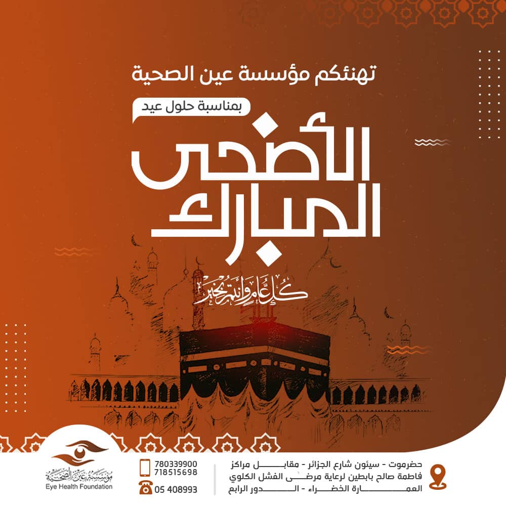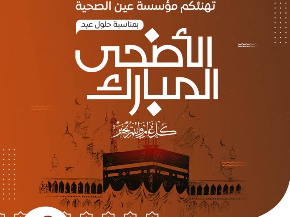 يونيو 16, 2024Published by إدارة الإعلام at يونيو 16, 2024Categories الأخبارتهنئة بمناسبة عيد الأضحى المبارك بمناسبة عيد الأضحى المبارك يهنئكم موظفي و منسوبي مؤسسة عين الصحية أعاده الله عليكم باليمن و الامن و المسرات